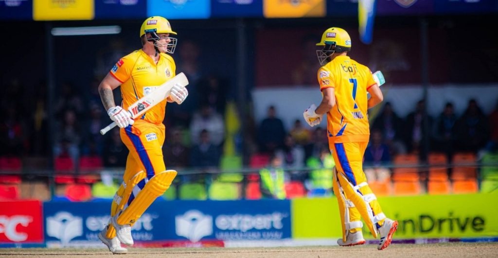 यस्तै ओपनर जोश ब्राउनले २५ बलमा २४ रन, कप्तान दीपेन्द्र सिंह ऐरीले ११ बलमा २ छक्का प्रहार गर्दै १९ रन बनाए । विनोद भण्डारीले १३ बलमा १५ रन जोडे । बलिङमा विराटनगरका कप्तान सन्दीप लामिछानेले ४ ओभरमा २० रन खर्चेर ३ विकेट लिए । अन्तिम ओभर मात्र बलिङ गरेका प्रतिश जिसीले ४ रन खर्चेर २ तथा बसिर अहमदले १ विकेट लिए ।